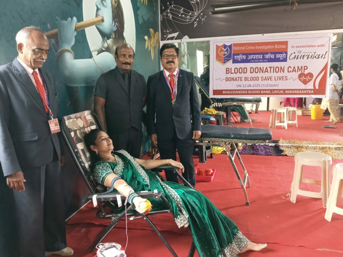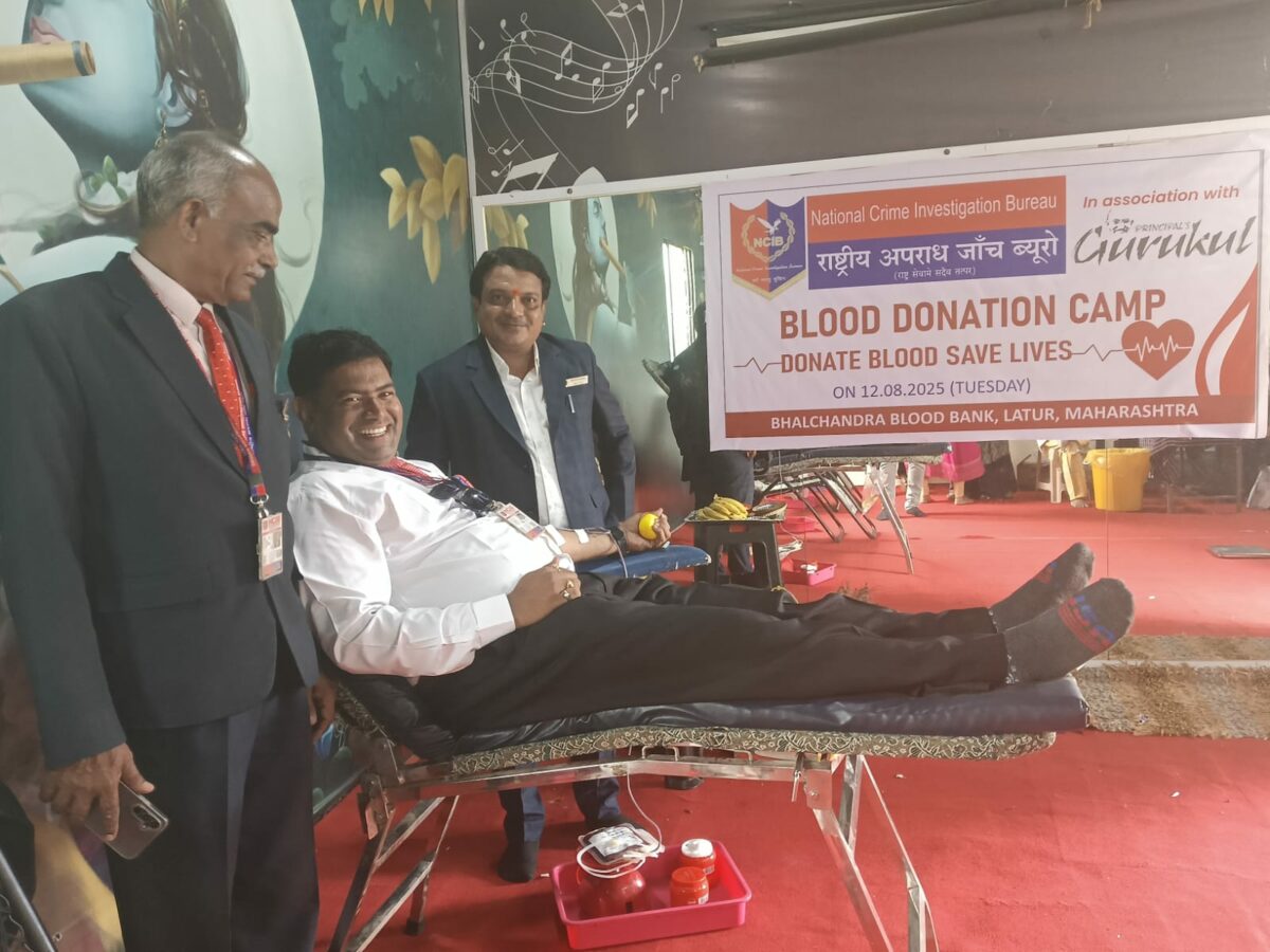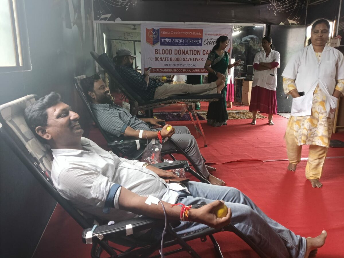 राष्ट्रीय अपराध जांच ब्यूरो (एनसीआईबी) लातूर संभाग ने मंगलवार को एक विशाल रक्तदान शिविर का सफल आयोजन किया। यह कार्यक्रम माननीय राज्य निदेशक श्री सुरेश कुमार तिवेदु के मार्गदर्शन एवं नेतृत्व में, डॉ. बालचंद्र ब्लड बैंक, लातूर, महाराष्ट्र के सहयोग से संपन्न हुआ।